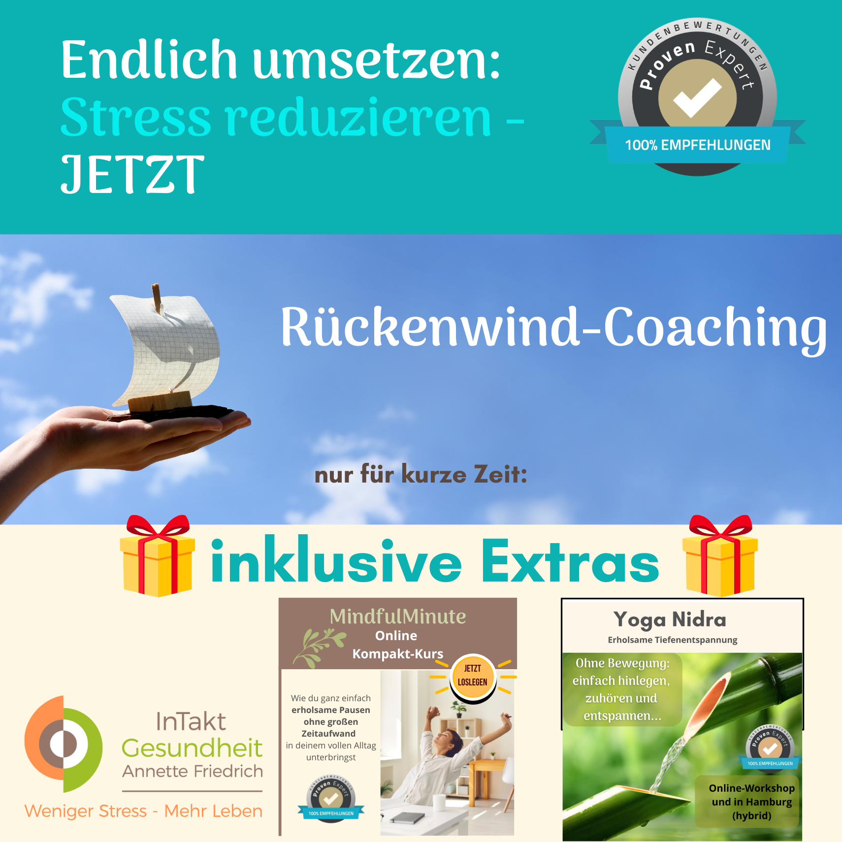 Das ist kein Problem – solltest du nicht von Kopf bis Fuß überzeugt sein, dass dir das „Rückenwind-Coaching“ helfen wird, deinen Stress zu reduzieren…